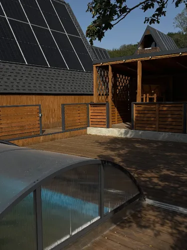 А‑фрейм с бассейном — современный домик в стиле шале для комфортного отдыха.